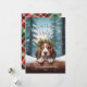Este adorável cartão de cartões de natal apresenta uma ilustração fofa de Cachorro-Cachorro-Cachorro vestindo uma coroa festiva de sagrada, pinheira e bagas, com flocos de neve suavemente caindo contra um fundo maravilhoso do inverno. O Cachorro Basset está a espreitar o registro de neve para dizer olá! O texto brincalhão "Feliz Feriado Desejo" adiciona uma saudação sazonal quente e pode ser personalizado como quiser. O verso é decorado com uma verificação de xadrez clássica, adicionando um toque tradicional ao design geral. Este cartão bonito e brincalhão é perfeito para enviar alegria de férias para a família e amigos, e o nome e data personalizáveis fazem dele uma marca personalizada.