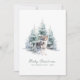 Um lobo bebê está aninhado numa floresta de pinheiros de inverno. O Feliz Natal está escrito em um roteiro simples abaixo, com uma linha adicional abaixo para personalizar ainda mais a medida. Todo o texto deste cartão pode ser editado. Há uma mensagem de Natal para você personalizar nas costas.