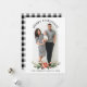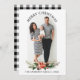 Moderno Trendy Rustic Black & White Buffalo Photo Arch Merry Christmas Card (Cartão de Natal feliz) inclui Watercolor Poinsettia Floral com pinos e verde de inverno.