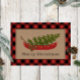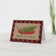 Ilustração de uma canoa vermelha decorada com luzes de Natal com dentro de árvore de Natal. O fundo é o estoque de papelão castanho com borda de xadrez de búfalos vermelha e preta. Personalize o dentro de texto.