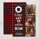 Celebre o verdadeiro significado da época com este encantador cartão de Natal "Venha, adoremos a Ele" em Xadrez de Búfalo Rústico da "Plaid Perfection". Este design aconchegante e inspirado em casa de fazenda combina o clássico xadrez vermelho e preto com fé sincera e calor familiar — uma maneira linda de compartilhar seu amor e bênçãos neste Natal. Com uma ousada mensagem "Venha, adoremos a Ele" ao lado de suas fotos favoritas de Natal, este cartão captura perfeitamente o espírito do Natal. A parte de trás do cartão apresenta um padrão completo de xadrez de búfalo, completando o visual rústico e atemporal. Todo o texto e fotos são totalmente personalizáveis, permitindo que você personalize nomes, saudações e imagens para criar uma lembrança única para seus entes queridos. Edite o texto e as fotos na