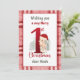 Cartão de Natal de 1rua com um lindo veado de Natal com chapéu de Papai Noel e grande número vermelho no fundo da xadrez. Personalize facilmente o texto ou deixe algum vazio dele. - Kate Eden Art