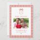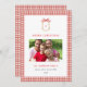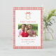 Capturar o espírito da estação com esta charmosa placa de Cartões de natal retrorreflectores com borda de xadrez de gingham vermelho e branco. Uma crista com arco, lindamente pintada à mão, monograma e cor d'água, adiciona um toque de elegância personalizada. Personalize-o com a foto inicial da sua família e de uma carinhosa para um design giro e pré-pago que reflete o seu encanto sulista.