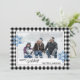 Cartão de Férias Único, clássico, de moda, bonito e decorativo. Feriados Felizes e Bonitos saudando texto e sala para personalizar ou personalizar com uma foto, nome da família (ou nomes individuais) e mensagem de sua escolha, emoldurados por dois flocos de neve coloridos de silvergrey em um fundo de cheque de lenhador de búfalo preto e branco clássico.