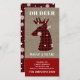 Este engraçado cartão de Natal diz OH DEER O QUE UM ANO em volta de uma cabeça de veado de xadrez de búfalo. O reverso da carta é uma xadrez de búfalo com flocos de neve.