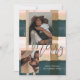 Mande a sua família e amigos uma alegria de férias com o nosso moderno e na moda, cor-de-rosa, verde e xadrez dourado, dois cartões de Natal fotográficos. Design apresenta o design de padrão de xadrez original com a cobertura de script de "Feliz". Personalize com duas de suas fotos especiais da família, cartões de natal, assinaturas da família e ano. Trabalho de arte de xadrez de aquarela original por Paparia de Moodthologia.