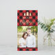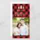 Mande aos seus amigos e família um cartão com fotos de férias de na moda nesta época de Natal. Este belo cartão de Natal rústico apresenta um fundo de xadrez vermelho e preto, texto de folha de ouro falso e espaços reservados para a sua fotografia e texto personalizados. O cartão com fotos de férias é uma mistura deliciosa de elementos clássicos e modernos!