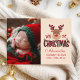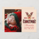 Cartão De Festividades Xadrez Reindeer Baby Primeira Foto De Natal