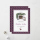 Cartão de Natal de xadrez roxa elegante com título manuscrito e ilustrações de cor d'água de uma lareira e um pinto giro. Personalize facilmente este cartão de Natal com aquarela com o seu nome familiar.