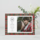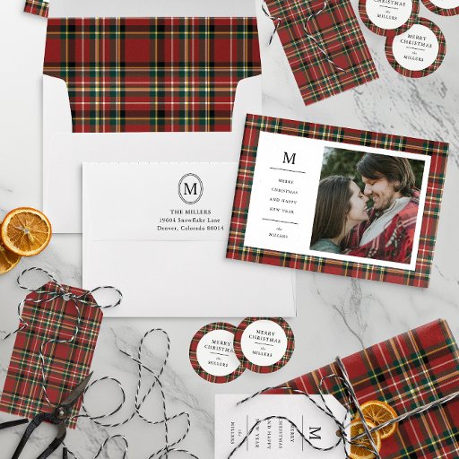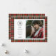 Este Cartões de foto de Natal de estilo vintage apresenta um fundo de xadrez vermelha clássico, feito à mão, um monograma inicial oval e sala para uma grande foto da família. O texto e a foto são personalizáveis para suas necessidades familiares.