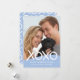 Crie um cartão de foto personalizado que amigos e familiares vão adorar! Este design moderno de "Abraços e Beijos" apresenta "XOXO" em um estilo simples de pincelada, complementado por um padrão coordenado no verso. Personalize o modelo com uma foto favorita, nome e mensagem, perfeito para o Dia dos Namorados, feriados, aniversários, aniversário de casamento, chá de bebê, Dia das Mães ou outra ocasião especial. Cores: azul e branco. Disponível como cartão impresso ou download digital.