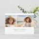 Frente - 2 Fotos com a saudação em uma fonte simples, mínima e um fundo branco. Back - Arte Retro Line em Sombras de Verde Natal - Use duas fotos e faça uma saudação de Natal Única e moderna com uma letra simples na frente e um padrão festivo de arte em segundo plano. Se precisar mover alguma coisa, clique no botão personalizar para fazer alterações.