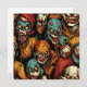 Aqui está alguma arte de IA retratando uma colagem de zumbis palhaços assustadores e assustadores cartão em branco.