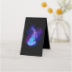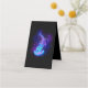 Água-viva grande, azul, desenhada artisticamente, brilhante, brilhante, com longos tentáculos sobre fundo preto com bioluminescência roxa. Água-viva luminosa.