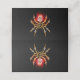 Aranha mecânica, com pá-pá de ouro, engrenagens de latão e uma lâmpada de vidro vermelha sobre fundo preto. Estilo Steampunk.