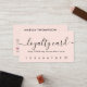 Recompense seus clientes em estilo com nosso cartão de fidelidade minimalista personalizado, projetado com uma sofisticada cor-de-rosa-rosa-pincel. A frente apresenta o elegante título "Cartão de Lealdade" na caligrafia moderna, seguido de espaço para sua oferta exclusiva de promocional. No verso, adicione as informações de contato, garantindo acesso fácil aos seus clientes. Este cartão é perfeito para cabeleireiros, maquiadores, profissionais de spa e salões de beleza que buscam construir relações duradouras com clientes. Elevem o seu negócio com este cartão de fidelidade chic.