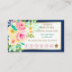 Aqui está uma maneira bonito de tratar seus clientes leais a um desconto de vez em quando! Este cartão foi projetado para um salão ou spa de beleza, prego ou estilo, mas todo o texto é facilmente personalizado, portanto você pode alterá-lo para atender a quase todos os negócios de varejo. A frente apresenta um belo buquê de rosas cor-de-rosa e pêssego. As cores incluem ouro rosa, pálido, aqua e verde, com um toque de violeta. O seu texto personalizado está em verde-ouro e verde-branco no lado direito, e colocado em uma faixa branca revestida a ouro. Uma borda azul marinho dá elegância e estilo. A parte de trás da placa também é azul, com três campos de texto para personalização. Clássico! *Este design usa trabalho de arte do www.CreateTheCut.com.