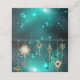 Chaves Douradas e antigas com engrenagens e marcadores penduram em correntes douradas sobre fundo verde luminoso.
