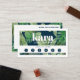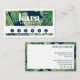 Uma ilustração aquosa das folhas tropicais verdes sobre um fundo azul escuro e marinho adiciona uma estética chic a esta moderna carta de fidelidade. Uma fonte em negrito na frente mostra seu nome de marca contra o fundo escuro. Esta placa de lado duplo oferece muito espaço na parte traseira para seu nome e detalhes de contato. Ilustração e design © 1201AM Design Studio | www.1201am.com