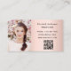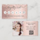 fundo rosa dourado, texto preto. Decorado com confete. Na frente: adicione desconto. Voltar: Personalize e adicione sua foto, nome, título, número de telefone, email, endereço do site, código qr ao seu site.
