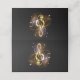 Jewelry, gold, musical treble clef with golden notes and stars on black glowing background.