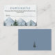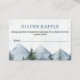 Winter, wilderness themed baby shower diaper raffle ticket featuring some mountains and pine trees and faintly colored snow flakes. This baby it's cold or wilderness themed baby shower diaper raffle card is ideal for a winter baby shower.