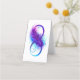 Símbolo infinito com uma bela pena pintada em cores roxas e azuis brilhantes sobre fundo branco.