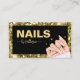 Cartão de Lealdade Moderno, Manicurista do Salão de Neve, preto e Dourado, com mão manicurada de mulher. Edite o nome do artista de unhas, o perfil social e o número de telefone, etc.