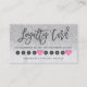 A brilhante reluz prateada brilha a escrita branca de mármore, fazendo um cartão de fidelidade cardíaca cor-de-rosa com letra moderna de pincel em branco, um cartão simples, profissional e minimalista. Ofereça 10 tratamentos e desconto aos seus clientes.