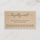 Simples cartão de fidelidade comercial com o título com baloiços em uma elegante letra escrita à mão sobre um fundo marrom rústico. O modelo inclui dez pontos e a parte traseira tem suas informações de contato. Esta design feminina é excelente para um negócio de artesanatos feito à mão.