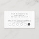 A clean, elegant loyalty card designed to keep clients coming back. Featuring soft white hearts and a professional layout, this card includes your business name, address, and a customizable reward offer (like “15% off after 5 visits”). Perfect for beauty salons, spas, cafes, and retail shops looking to increase repeat visits in a stylish, tangible way.