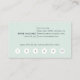 Os cartões de visitas de fidelidade de chic para seus serviços de salão, spa ou beleza apresentam seu nome ou nome de sua empresa, acentuados por duas ilustrações de cor d'água de fatia de agata geode em verde de seaglass etéreo. Adicione as informações de contato do seu cheio ao marinho profundo ao combinar verde-mar pálido. Inclui a sua oferta de fidelidade personalizada (mostrada com "desfrute 20% de qualquer serviço após cinco visitas") e seis pontos.