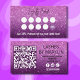 Transforme seu programa de fidelidade do cliente com esta elegante lavanda e um profundo cartão de fidelidade à lash roxo. Apresentando um design luxuoso ombré glitter que transita de lavanda mole para roxo profundo rico, esta placa combina sofisticação com praticidade. Ele inclui dez círculos brancos de punch, fazer-o a solução perfeita para rastrear visitas ou compras de clientes. Este design é ideal para técnicos de barra, salões de beleza e outras empresas de negócios que desejam elevar a experiência de seus clientes. Adicione um código QR verificável para maior conveniência, permitindo que os clientes acessem rapidamente sua página de reserva, perfis de mídia social ou site. Essa placa de fidelidade combina perfeitamente a funcionalidade com um design surpreendente, garantindo que sua marca permaneça memorável e profissional. Quer seja apresentado no receptáculo do seu salão ou entregue diretamente aos clientes, este cartão melhora o estilo da sua empresa e incentiva visitas repetidas. Seu design brilhante e o layout prático fazem dele uma excelente adição aos seus esforços de marca. Escolha esta lavanda e um cartão de fidelidade roxo profundo para impressionar e reter seus clientes.