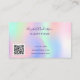 Um fundo holográfico de tendência com cores unicórnicas e cores arco-íris em cor rosa, roxo, verde-menta. Decorado com gotas. Na frente: adicione desconto. Voltar: Personalize e adicione seu nome, título, número de telefone, email, endereço do site, código qr ao seu site. Letras roxas. Sem brilho nas costas.