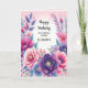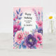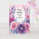 Feliz Cartão Irmã de Aniversário, Brilhante e Rosa Púrpura Flores Azuis.
