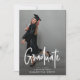 Anúncio de Formando de Foto de Graduação de Script Branco *As cores de texto e backers de designs são personalizadas em várias opções e formatos diferentes