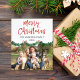 Cartão de Foto de Família com Guirlanda de Natal Alegre Escrita à Mão dentro do Orçamento. A foto e o texto deste rótulo escrito à mão podem ser atualizados e personalizados com sua foto, ano e nome da família.