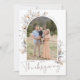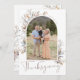 Cartão de foto de Ação de Graças com bela folhagem de outono e foto arqueada. A frente diz "Ação de Graças Feliz". Adicione uma imagem adicional no verso e sua mensagem personalizada. Envie este lindo cartão de Ação de Graças para abençoar seus entes queridos nesta temporada de feriados.