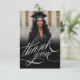 Celebre sua formatura com estilo com este cartão de agradecimento plano que apresenta uma tipografia sofisticada que graciosamente lê "Obrigado" na frente. Mostre sua foto favorita de formatura para um toque pessoal que captura o momento perfeitamente. O verso inclui espaço para uma mensagem totalmente personalizável para expressar sua sincera gratidão a amigos, familiares e entes queridos. Impresso em papel cartão premium com um design moderno e elegante, este cartão é uma maneira atemporal de dizer obrigado.