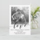 Convite de casamento elegante em preto e branco com sua foto personalizada e texto de amor. Foto: href="http://www.freepik.com/free-photo/couple-sitting-on-grass-looking-at-each-other-s-eyes_986398.htm">Criado por Freepik