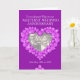 Você é casado há 33 anos ou 6 anos? Se sim, é seu aniversário de casamento de ametista, então faça dele algo especial com um cartão de ametista. Personalize este cartão de aniversário de casamento roxo ametista com o seu relacionamento, foto e anos de casamento e mensagem interna no cartão. O exemplo diz: Para minha querida esposa no nosso Aniversário de Casamento de Ametista 25 de maio de 1996 a 2029. Efeito de coração de ametista arte e design por Sarah Trett. www.sarahtrett.com para www.mylittleeden.com