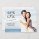 Tipografia divertida e uma bandeira náutica voando em branco adicionam estilo a este cartão plano de foto com sua foto de noivado e informações de "Save the Date" em texto cinza no lado esquerdo da frente. Uma cor cinza neutra suave emoldura os detalhes no verso onde você pode personalizar o texto com todos os detalhes importantes; data do casamento, site ou uma mensagem pessoal. Perfeito para um retrato deslocado.