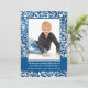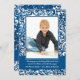Um impressionante padrão branco no azul com espirais, pontos e estrelas. Bonito como um cartão de Natal ou convite de inverno para uma festa de aniversário. O cartão é fácil de personalizar com sua redação, fonte, cor da fonte e escolha de seis tipos de papel.