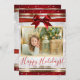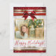Cartão de Foto de Férias com Laço Vermelho e Brilh