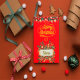 Compartilhe a alegria da temporada com nosso cartão de Natal elegante vermelho e dourado. Este design clássico apresenta um fundo vermelho rico, um belo texto "Feliz Natal" em folha de ouro falso e folhagens tradicionais de Natal, criando um visual atemporal e festivo.