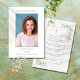 Cartões de oração memorial de condolências de funeral com fotos com elegantes folhas de verde aquarela que enquadram a oração. Você pode personalizar com a oração escolhida, se preferir. Criado por Thisisnotme©