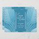 Folhas tropicais criam um apelo moderno e cativante para estes cartões de salvar a data de casamento. Apresenta tons de azul turquesa. Use para complementar temas de casamento tropical e eventos especiais usando azul turquesa como cor focal. O verso do cartão acomodará quatro das suas fotos favoritas. Há também um código QR que você pode usar para o seu site de casamento, RSVP, lista de casamento (entre outros). Use o modelo para personalizar.