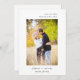 Um cartão de foto de salvar a data minimalista. Este cartão de anúncio de casamento apresenta texto minimalista simples com uma foto. A foto é apenas para fins de posicionamento e pode ser substituída por qualquer foto de sua escolha. Todo o texto na frente e no verso do cartão pode ser personalizado. O cartão perfeito para anunciar seu próximo casamento.