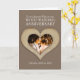 Cartão de foto do 5º aniversário de casamento de madeira. Personalize este cartão de aniversário de casamento de madeira com efeito marrom com sua relação, foto e anos de casamento e mensagem interna do cartão. Exemplo diz: Para minha querida esposa em nosso aniversário de casamento de madeira 25 de maio de 2024 a 2029. Arte e design de coração de madeira esculpida por Sarah Trett. www.sarahtrett.com para www.mylittleeden.com