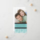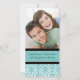 Cartão de anúncio de noivado com foto em azul turquesa elegante, preto e branco, padrão floral clássico damask, personalizável com seus nomes, a maneira perfeita de anunciar seu noivado para amigos e familiares. Padrão disponível em uma ampla gama de produtos de casamento correspondentes.